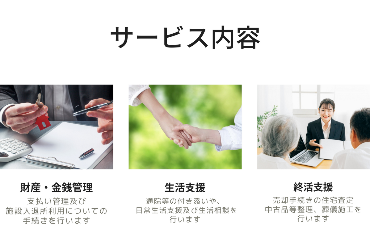 財産管理契約を結び、財産の管理を行い生活費の管理や、金融機関への同行させていただきます